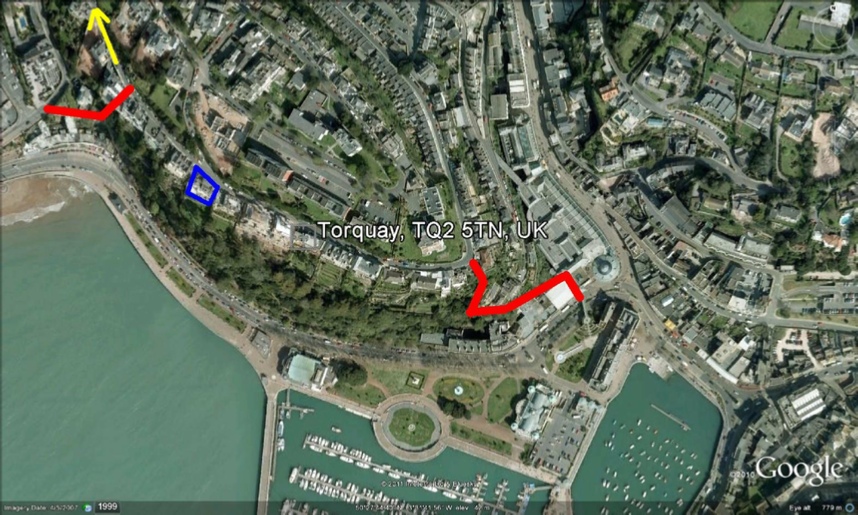 RED RIGHT IS A WALKING ROUTE DOWN STEPS TO THE HARBOUR SIDE